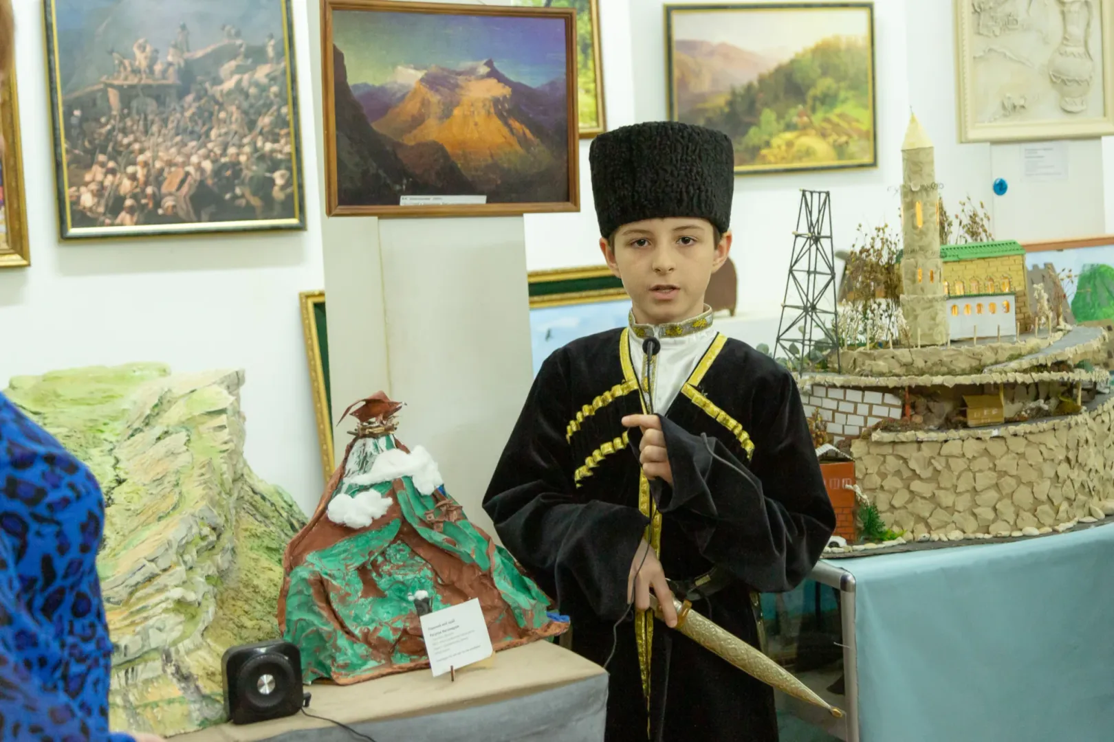На выставке представлены работы победителей детского творческого конкурса «Наш орлиный Дагестан», посвященного истории, культуре и природной красоте этого живописного кавказского региона России.