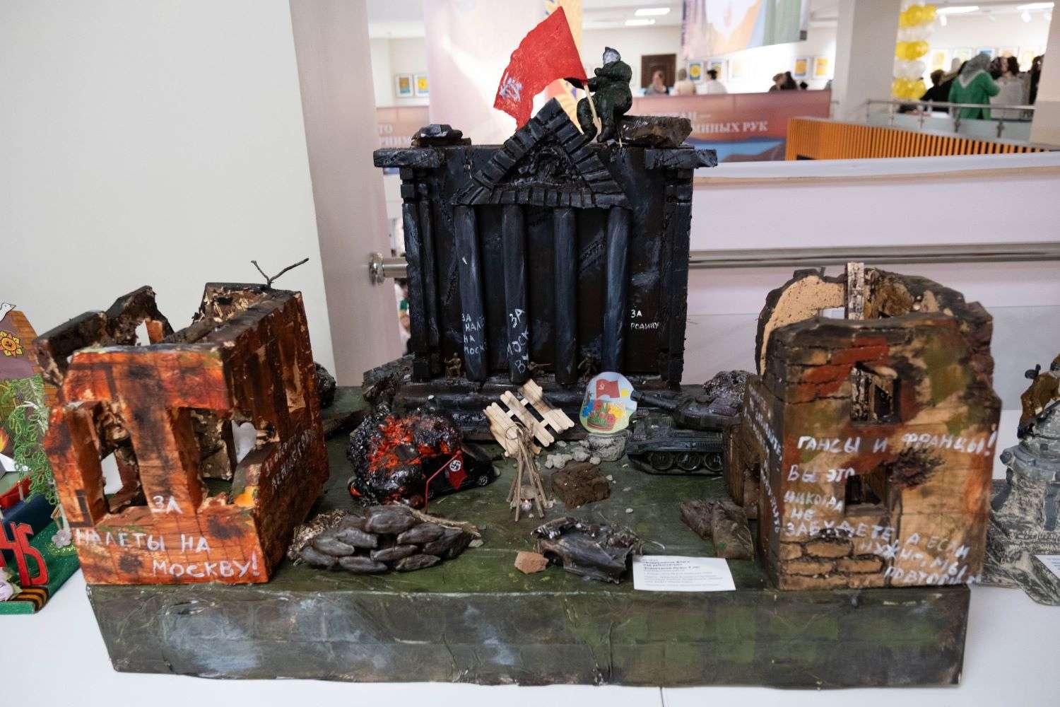 В рамках семейного фестиваля «Традиции Дагестана» прошла выставка творческих работ победителей всероссийского конкурса «Знамя Победы», посвященного 80-летию Победы в Великой Отечественной войне и Году Защитника Отечества в России.