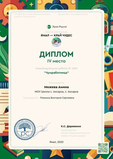 8 лет, с. Аксарка"Чумработница"