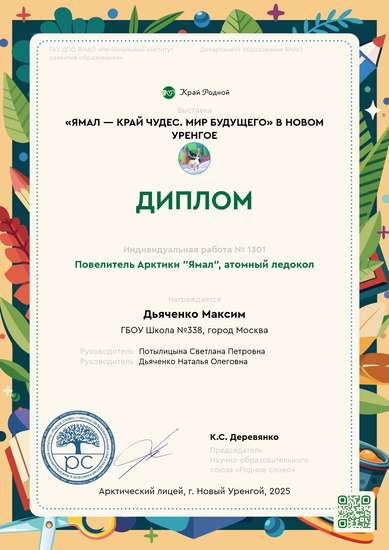 Собрав весь проект ледокола "Ямал", я понял, как важны современные технологии в освоении новых территорий, а также в целом в жизни любых народов нашей необъятной страны.