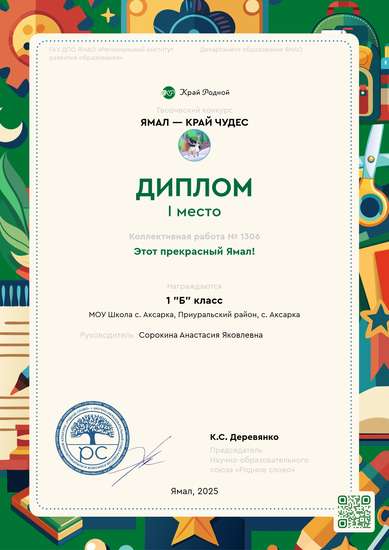 Мы живем на Ямальской земле, а для многих наших детей Ямал - это «Малая Родина ». Неповторимый облик родной природы, их самобытность - все это, проходя через создание и чувства, становится частью человеческой судьбы. И как бы не менялось наше общество и наша жизнь, что бы в ней не происходило, необходимые человеку качества должны быть всегда: это любовь к близким, родному делу, природе и Родине.