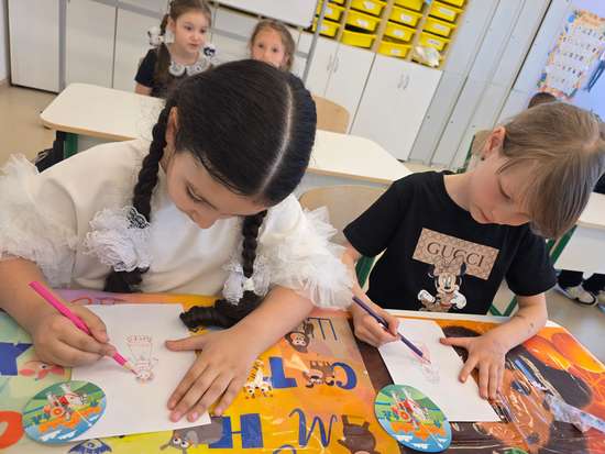 Дети раскрашивают готовые башни.