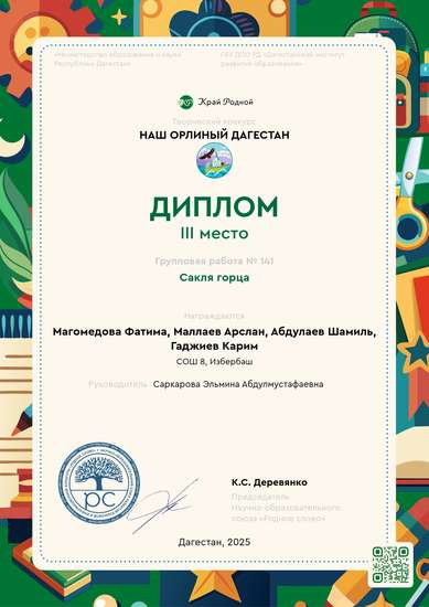 III место на конкурсе Наш орлиный Дагестан