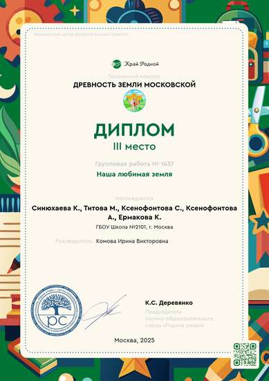 III место на конкурсе Древность земли Московской