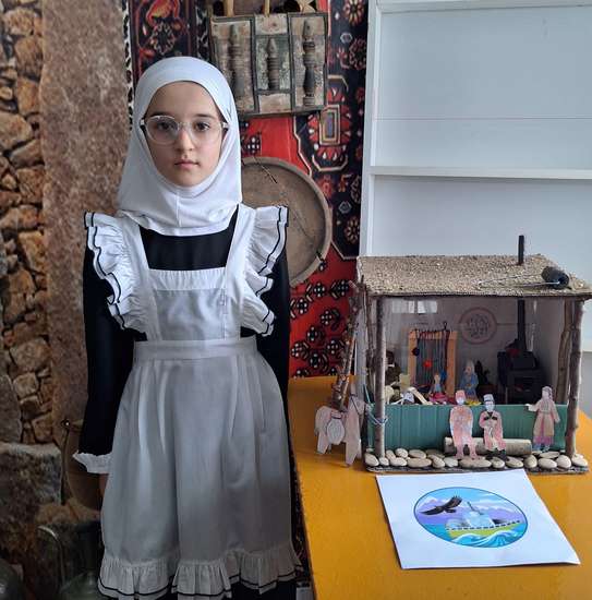 Работа "Сакля горца" представляет собой мини-макет, состоящий из поделок, созданных по технологической карте из учебного пособия "Мой Дагестан. Край, в котором я живу". Есть замена изделий по личному замыслу. На начальном этапе был создан эскиз, опираясь на материалы учебного пособия, собраны необходимые материалы для изделий. В ходе работы изменены размеры сакли. Диван, люлька , ковры, блюда хинкал и чуду, сабля и блюдо с узорами, кот, жители , ослик с кувшинами сделаны из выкроек учебного пособия "Мой Дагестан. Край, в котором я живу". Крыша сакли покрыта землей с камешками, на ней камень для трамбовки - михир. Подняться на крышу можно по деревянной лестнице. После подготовки всех изделий приступили к сборке макета. В правом углу комнаты расположилась печка с дымоходом, а под ней таз с дровами и кизяком. В комнату добавлен ковроткаческий станок, висит керосиновая лампа. С внешней стороны веранды на скамье из "бревна" сидят горцы.