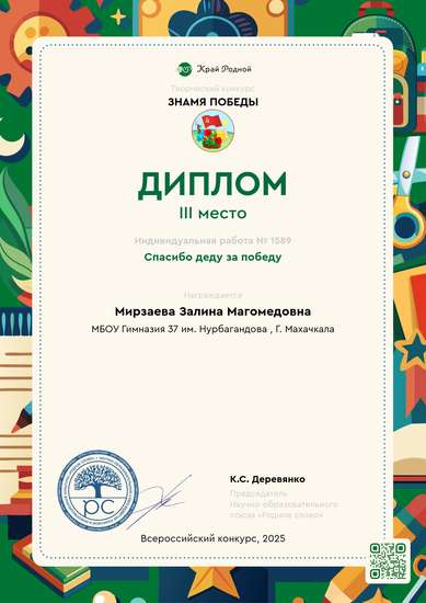 Участник, загрузивший работу:Мирзаева Залина Магомедовна