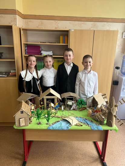 В данном проекте представлены ремесла, которыми мы хотели показать всю важность и их роль в обеспечении жизни, развитии торговли и культуры в нашей истории: 1. Мукомольное ремесло (ветреная мельница) 2. Кузнечное ремесло 3. Гончарное ремесло 4. Прядение (прялка) 5. Ремесло плетения 6. Кожевенное ремесло Этапы работы проекта: 1. Обсуждение выбора ремесел, сбор информации (статьи, иллюстрации). 2. Создание общего эскиза макета. 3. Подбор необходимых материалов. 4. Поиск примеров изделий для каждого ремесла (статьи, иллюстрации). 5. Подбор форм и размеров каждой детали в макете. 6. Использование разных техник в работе (лепка, склеивание, конструирование, декорирование, моделирование материалов). 7. Конструирование мастерских каждого ремесла. 8. Склеивание деталей, создание конструкций. 9. Раскрашивание, декорирование. 10. Сборка и организация всей площадки макета. 11. Распределение рабочих зон по общей композиции. 12. Добавление декораций (колодец, деревья, мост, речка, дорожки, люди).