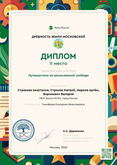 Завершающий этап проекта «Путешествие по ремесленной слободе» и его исполнители.