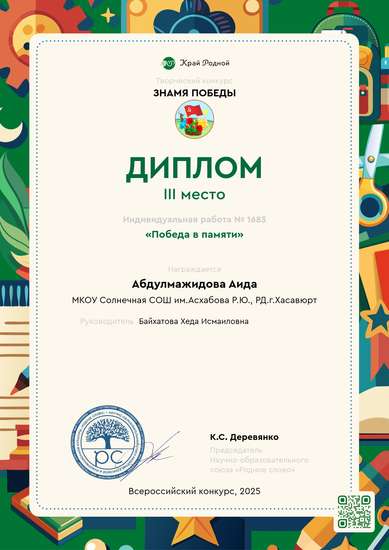 Участник, загрузивший работу:Байхатова Хеда Исмаиловна