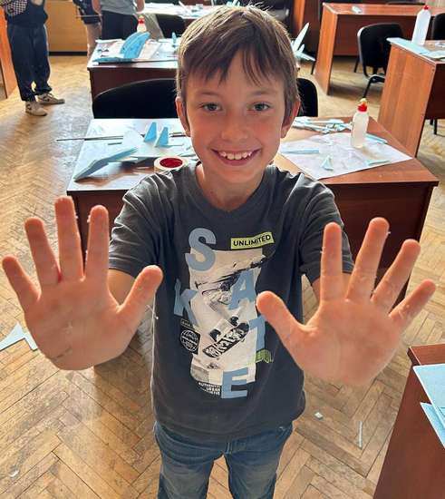 Рука в технике оригами окончена, кольцо на месте. Мастер оценивает работу и четкость деталей перед демонстрацией