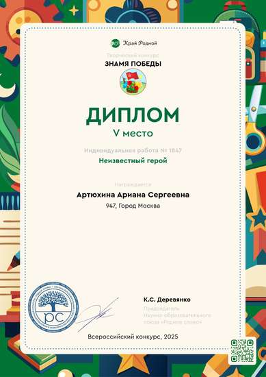 Участник, загрузивший работу:Артюхина Ариана Сергеевна