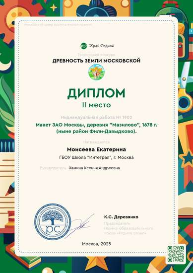 7 лет, г. МоскваМакет ЗАО Москвы, деревня "Мазилово", 1678 г. (ныне район Фили-Давыдково).