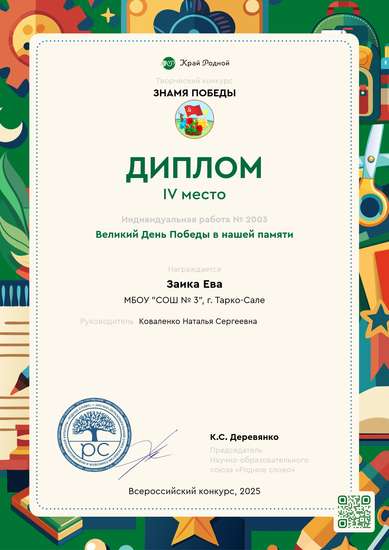 IV место на конкурсе Знамя Победы