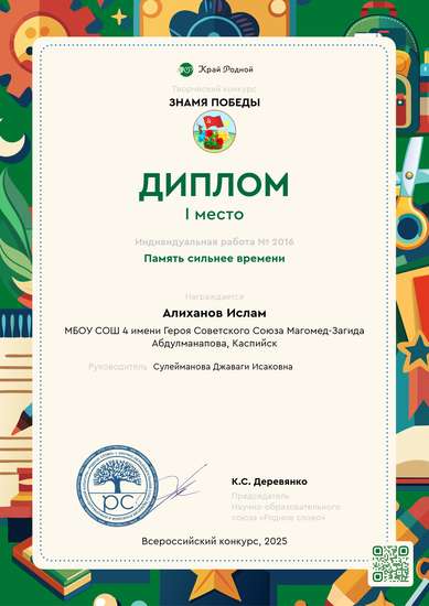 Участник, загрузивший работу:Алиханова Самира Рамазановна