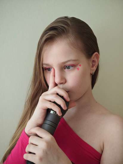 Аня - автор инсталяции, раскрашивает объекты