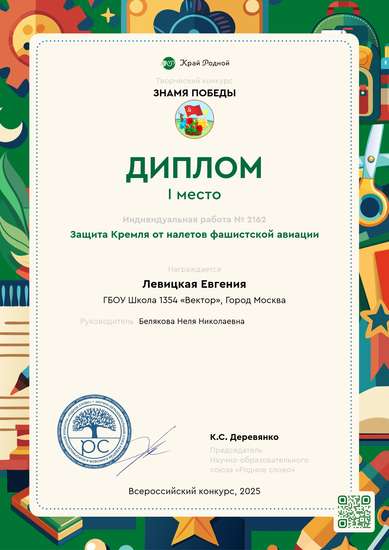 7 лет, Город МоскваЗащита Кремля от налетов фашистской авиации