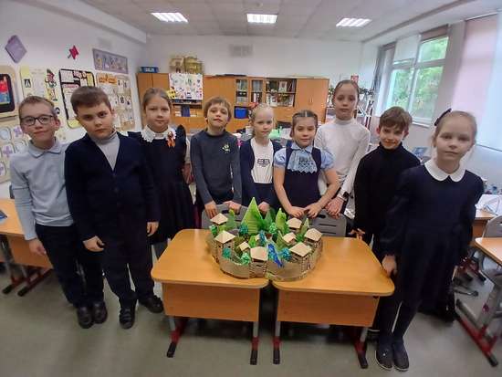 Ребята 2 класса "А" в рамках проекта "Моя Москва, горжусь тобой!" начали делать детали Московского Кремля. Также группой ребят были сделаны элементы дикой природы ( деревья, лоси). В этом году для участия в конкурсе ученики решили собрать макет "Московский Кремль" на Боровицком холме. Они добавили элементов ( избы, холмы) и собрали макет Кремля. Ребята выполняли работу во внеурочное время ( после уроков, во время каникул).