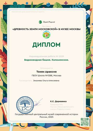 I место на конкурсе Древность земли МосковскойУчастник выставки «Древность земли Московской» в музее Москвы