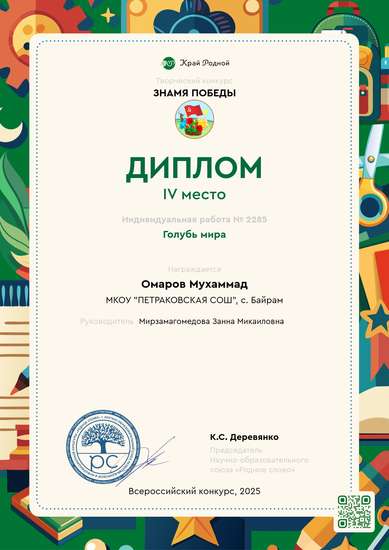 Участник, загрузивший работу:Мирзамагомедова Занна Микаиловна