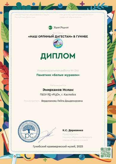 I место на конкурсе Наш орлиный ДагестанУчастник выставки «Наш орлиный Дагестан» в Гунибе