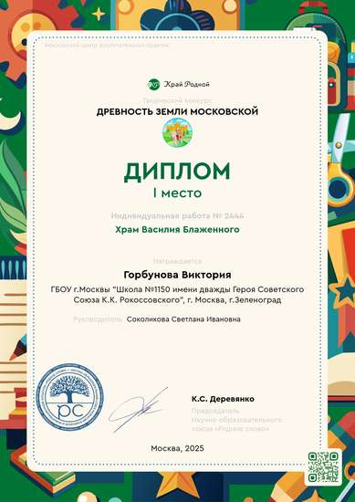 Учебное заведение:ГБОУ г.Москвы "Школа №1150 имени дважды Героя Советского Союза К.К. Рокоссовского"