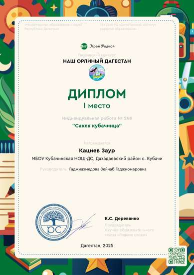 8 лет, Дахадаевский район с. Кубачи"Сакля кубачинца"