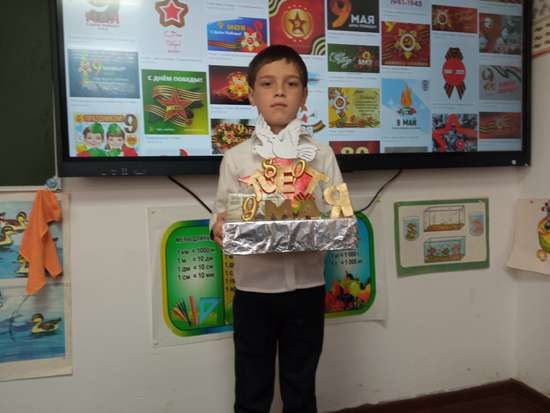 9 мая празднуем"День Победы"Это торжественный праздник .Вся Россия в этот день радуется со слезами на глазах,победе и печалится о погибших.Эту дату никогда не вычеркнут из истории, она останется навечно в календаре,и всегда будет напоминать о тех страшных событиях и великом разгроме фашистких войск.Дети должны знать и помнить историю своей героической Родины.Дети должны своими руками строить мир, беречь мир и ценить мир, который им оставили их деды ценой своей жизни. В этом году наша страна отмечает 80- летие Победы Великой Отечественной войне.Я помню! Я горжусь!