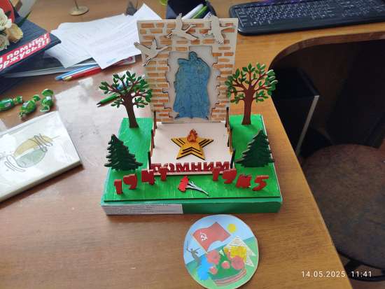 Свою поделку я сделал к 80-летней годовщине победы со дня Великой Победы. Моей поставленной целью было сформировать патриотическое представление детей о Великой Отечественной войне, учить создавать поделки своими руками, развивать творчество плюс ещё и мелкую моторику, совершать трудовые навыки, аккуратность, усидчивость трудолюбие. Думаю, что мою поделку оценят, спасибо всем большое
