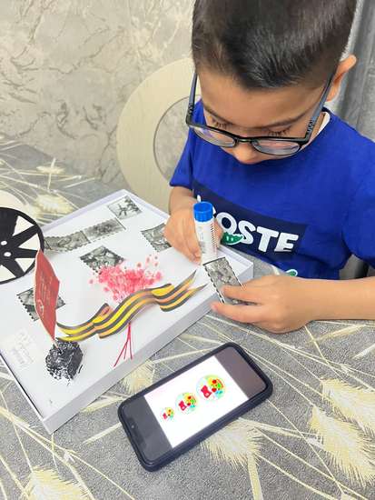 Работа была проделана с ребенком. Ему было интересно выполнять такого вида работу. С помощью поделки ребенок закрепил знания о героических символах. В работе использовались моменты с прошлого, в виде киноленты 🎥, вечный огонь. Работа выполнена эстетично, гармонично. Ведь мы должны помнить и ценить историю прошлого. Проделанная работа заслуживает внимания зрителей.