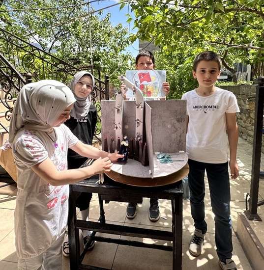 Магомаев Ахмед вместе с дедушкой готовит механизм для крутящегося диска с перегородкой.Готовит платформу для макета