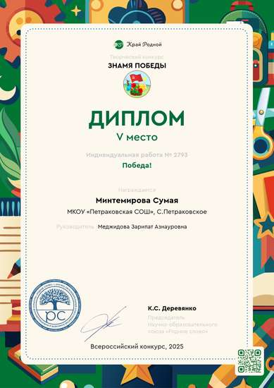 Участник, загрузивший работу:Меджидова Зарипат Азнауровна
