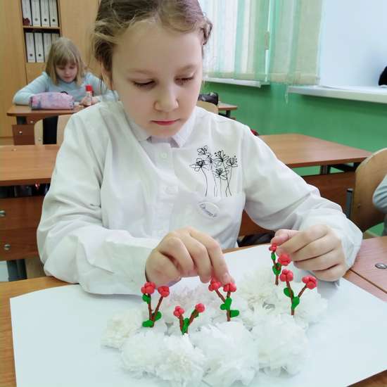 Работа детям очень понравилась. Все работали с увлечением, интересом. Ученик сказал, когда вы Оксана Галимьяновна, показали на экране картинку и сказали, что сегодня мы попробуем выполнить удивительный проект, я подумал, что это нереально. И откликнулся на выполнение ёлочек, решил только это по моим силам. Но когда увидел, что в руках одноклассниках творится чудо, то подумал, они же могут, а почему я побоялся. А далее в какой-то миг минутная тишина, в глазах задумчивость. И тут же воскликнул, а продолжение будет? Конечно будет, уверила я.
