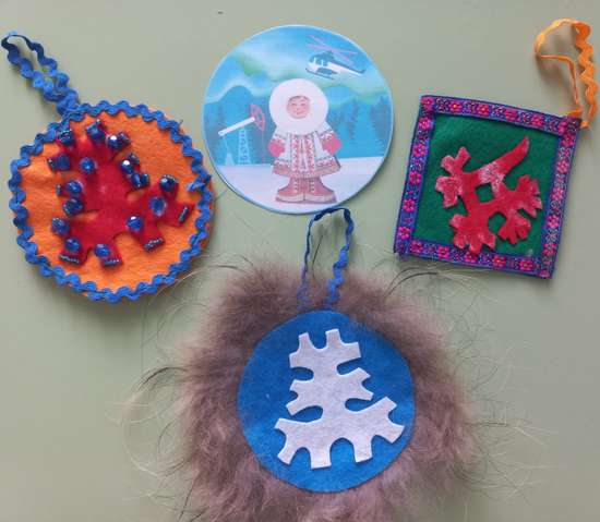 «Оберег народов Ханты и Манси» Знакомить детей с национальной культурой и творчеством коренных жителей севера – ханты. Закреплять умение детей украшать предметную форму, используя элементы хантыйских узоров. Развивать у детей творческое воображение, фантазию, формировать знания о народах, населяющих север, их культуре и искусстве. Воспитывать уважение и любовь к родному краю.