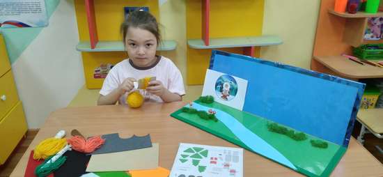 Панно "Волшебство югорских просторов" сделано воспитанницей подготовительной к школе группы Турсунбаевой Индирой под руководством воспитателей Анашкиной Татьяной Алексеевной и Надаговой Галимат Исмаиловной. Основа панно сделана из картона обклеенная цветной бумагой. Сказочная лисичка, глухарь и северный олень сделаны из фетра. Звери и растения Югры сделаны из бумаги. Деревья: берёза, ель и осина сделаны из картона, деревянных шпажек и пряжи. Панно создано по технологической карте из учебного пособия "Моя Югра. Край, в котором я живу" из комплекта для дошкольных образовательных организаций.