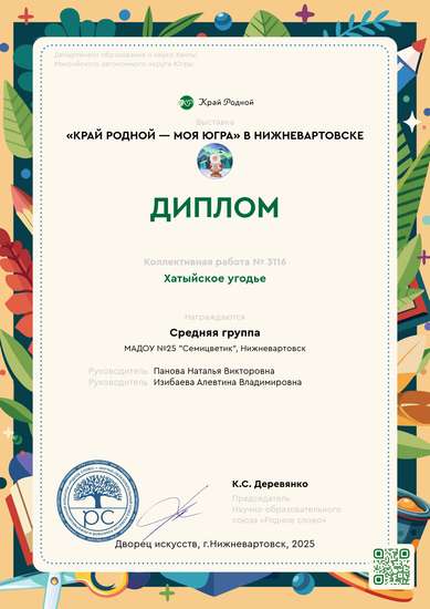 Готовая работаДля изготовления хантыйского угодья нам понадобились различные материалы. На большой лист плотного картона мы выложили мох.Сделали 2 чума, пол из картона и мешковины скреплены клеем, каркас чума из палочек от суши скрепленных шпагатом, из фетра вырезали покрытие чума и тоже закрепили шпагатом и клеем.На одном чуме вырезали и приклеили орнамент. Из фетра, ткани,меха и синтепона сделали кукол-хантов,нарисовали лицо. Камни покрасили и выложили реку,у которой стоит лодка из дерева и в ней лежит рыба,слепленная из пластилина, на берегу рыболовная сеть. Радом с чумом стоит олень-игрушка с санями сделанными из картона. На заднем плане деревья-игрушки.
