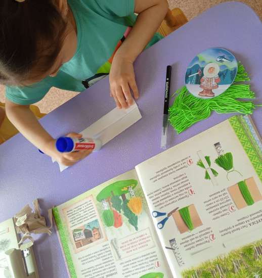 Жизнь коренных народов ханты и манси с самого рождения и всю жизнь связана с рекой, поэтому у коренных народов, основным занятием было рыболовство. Лодку-долбенку для рыбной ловли изготовили из перманентной бумаги, весло из шпажки. Весь период лова они с семьями жили в летних жилищах, добывая рыбу и заготовляя ее впрок. Чум изготовили из бумаги с изображением орнамента народов ханты и манси и шпажек. Ханты брали столько рыбы, сколько было необходимо, чтобы накормить семью, остальную рыбу выпускали.