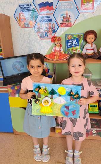 Одна из задач нравственного воспитания дошкольников - пропаганда экологического воспитания и интереса к родному краю, формирование экологической культуры, бережного отношения к окружающей природе и природным богатствам края. Творческая работа "Красота земли Югорской" представляет собой композицию родного края, изготовленную в технике оригами, где изображены фрагменты растительного и животного мира Югры, а также жилище и фигуры представителей коренных народов Севера ханты и манси.