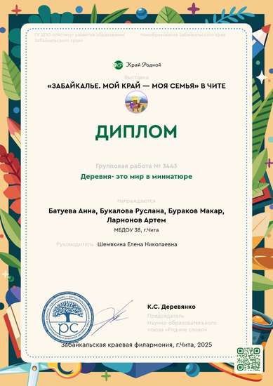 I место на конкурсе Забайкалье. Мой край — моя семьяУчастник выставки «Забайкалье. Мой край — моя семья» в Чите