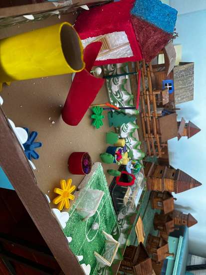 Мы давно с ребятами хотели сделать макет будущей площадке, здесь и подвернулся краевой конкурс. Мы не раздумывая решили принять участие в нем. Педагоги работали с электро-приборами(Электрический пистолет, лобзик), вырезали готовили детали, а дети склеивали детальки и устанавливали на поддон. Мы думаем у нас здорово все получилось! Желаем всем успеха в региональном конкурсе!