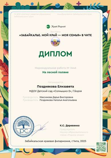 I место на конкурсе Забайкалье. Мой край — моя семьяУчастник выставки «Забайкалье. Мой край — моя семья» в Чите