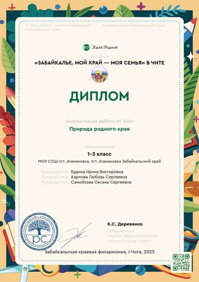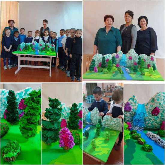 Работу, которую выполнили обучающиеся под руководством педагогов, посвящена красоте родного края. Забайкалье – это край неповторимой красоты и разнообразия. Богатый растительный мир Забайкалья насчитывает более 700-800 видов растений. Горные леса, степи и луга – это дом для разнообразных видов животных, среди которых встречаются как сибирские таёжные обитатели, так и представители степной монгольской фауны.В своей работе мы постарались отобразить эту красоту. Обучающиеся из разных материалов изготавливали макеты растений, гор, деревьев. Педагоги приготовили материал, распечатывали шаблоны, помогали в сборке макета.