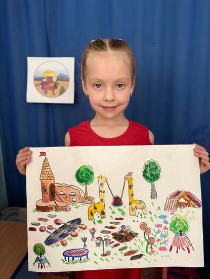 Проект детской площадки для детского сада № 28 г. Читы Детская площадка для дошкольников должна быть красочная, безопасная и функциональная. Именно такую площадку Зоя видит в своем проекте. В проекте показаны различные зоны отдыха: для активных игр, спокойного отдыха и творчества. Основные элементы площадки: • Игровой комплекс: игровой домик или замок. • Спортивные элементы: Качели (в том числе, парные, для друзей), гимнастический батут, метание мяча в корзины и в вертикальную цель (кольца в виде цветов). • Зона для отдыха и творчества: Столик для рисования с навесом от солнца. • Озеленение: Несколько кустов и деревьев для создания тени и уюта.