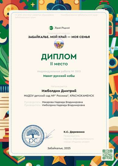 5 лет, КРАСНОКАМЕНСКМакет русской избы
