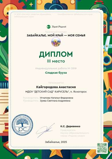 III место на конкурсе Забайкалье. Мой край — моя семья