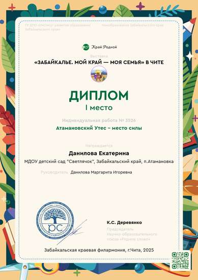I место на конкурсе Забайкалье. Мой край — моя семьяI место на выставке «Забайкалье. Мой край — моя семья» в Чите