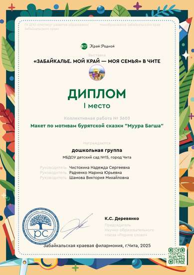 Каждый человек связан с прошлым, настоящим и будущим своей страны, поэтому необходимо, чтобы дети хорошо знали свои истоки, историю, культуру своего края, особенности менталитета, традиции и обычаи, предметно-вещественную атрибутику. Театр – один из самых доступных видов деятельности. Он очень понятен и интересен детям. Поэтому мы решили использовать театрализованную деятельность детей для изучения быта и традиций народов, проживающих в Забайкалье. Сказка, феномен культуры этноса, исторически отражает в себе хозяйственно-бытовой уклад народа, поэтому мы совместно с детьми, изготовили настольный кукольный театр к бурятской народной сказке «Муура Багша» Задачи: 1. Развивать представление о культуре, быте и традициях коренных народов родного края. 2. Развивать интерес к художественной культуре путем ознакомления со сказками народов родного края. 3. Привлечь внимание детей к устному народному творчеству. 4. Развивать восприятие, образное мышление, творческое воображение, память. 5. Формировать гражданственность, чувство любви и гордости к малой Родине. 6. Воспитывать эмоционально-ценностное отношение к своей семье, дому, городу, краю.