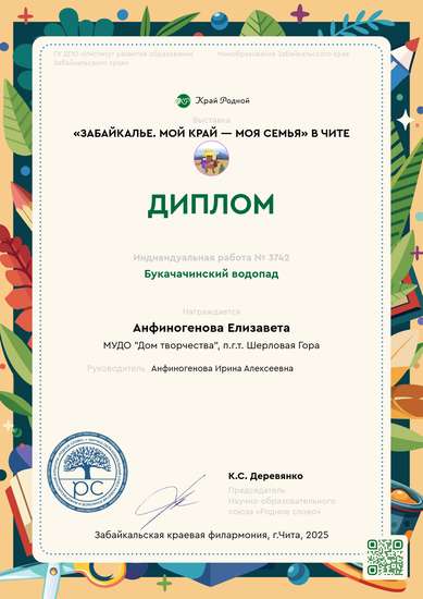 Водопад Букачачинский, расположенный в живописном Забайкальском крае, завораживает своей красотой и мощью. Вокруг водопада раскинулись величественные сосны, а на скалах можно увидеть мхи и лишайники. Я мечтаю побывать там, почувствовать свежесть горного воздуха и услышать шум воды, который наполняет окружающий лес. Я бы хотела увидеть радугу, которая появляется от солнечных лучей, отражающихся в воде. Я бы взяла с собой друзей, чтобы вместе исследовать природу и сделать много классных фотографий. Это было бы настоящее приключение! А пока я сделаю прекрасную поделку и почувствую себя там, среди зелени и звуков природы. Пусть моя поделка станет маленьким напоминанием о красоте водопада и о том, как приятно быть наедине с природой!