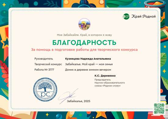 III место на конкурсе Забайкалье. Мой край — моя семья