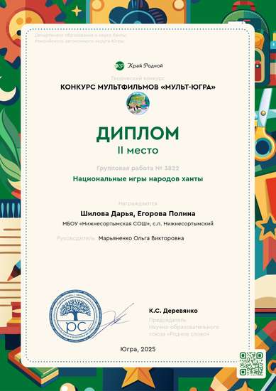II место на конкурсе Конкурс мультфильмов «Мульт-Югра»