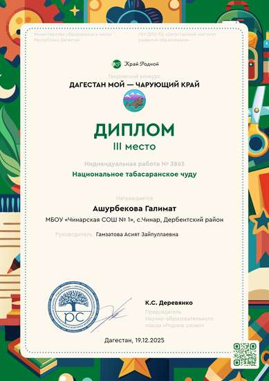 Участник, загрузивший работу:Гамзатова Асият Зайпуллаевна